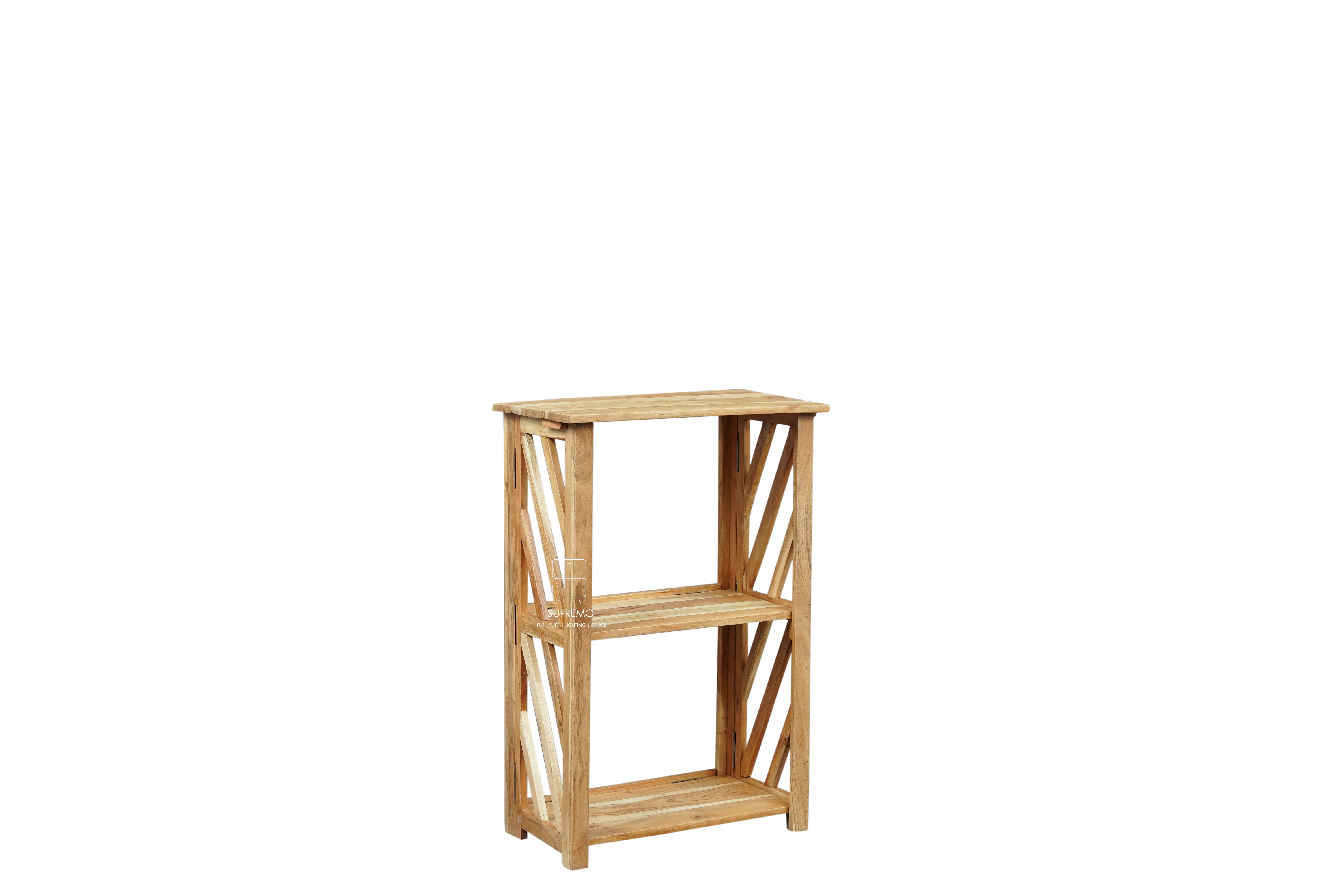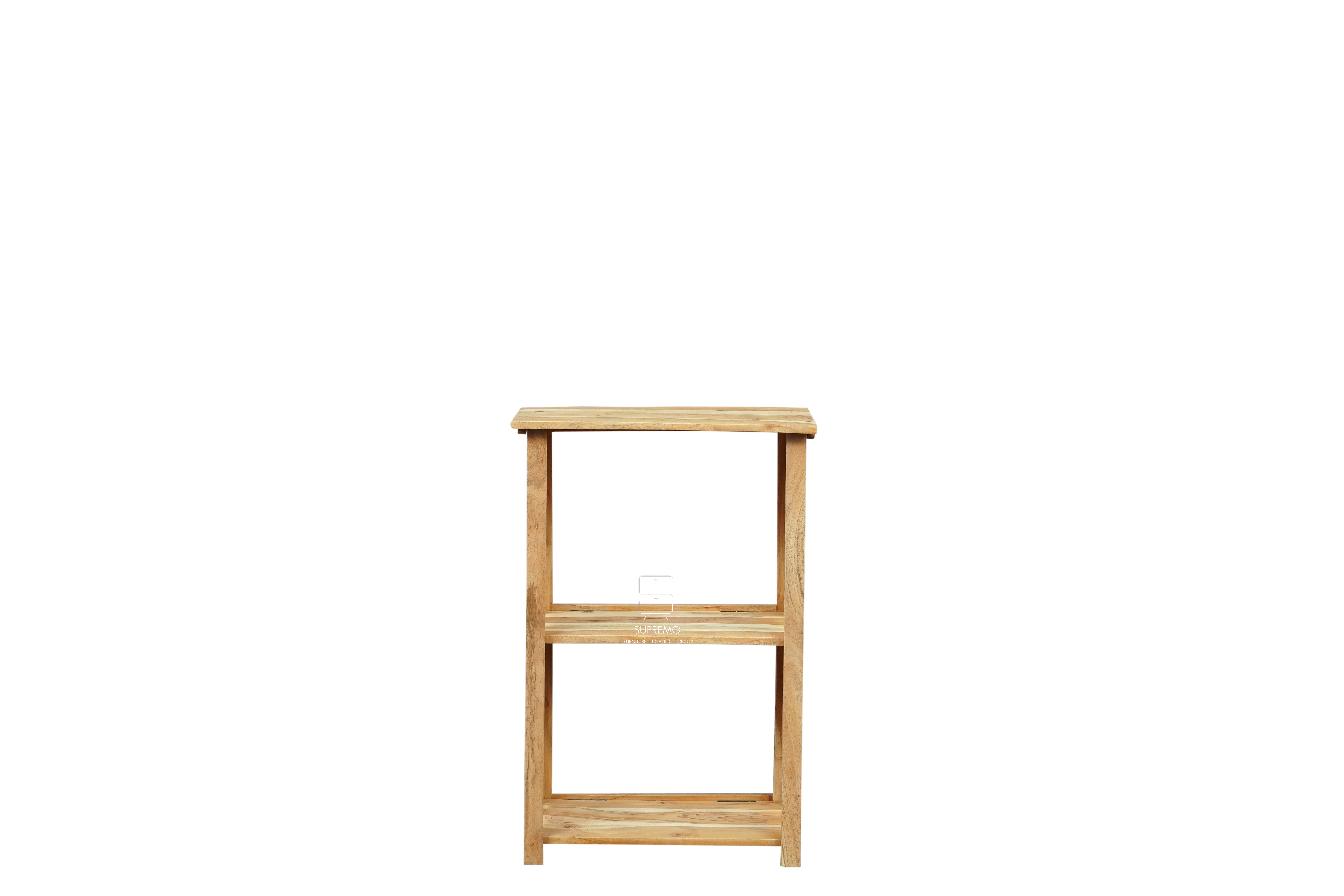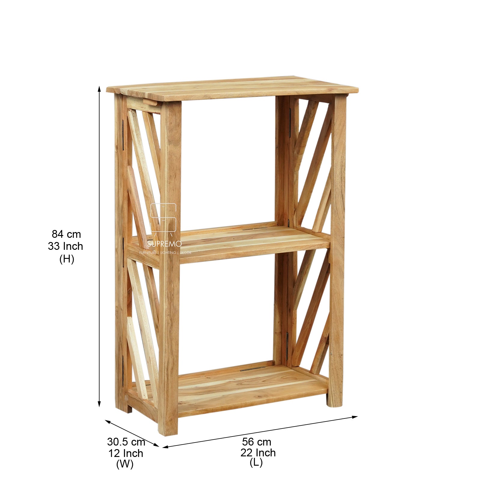 A sleek shelf unit crafted from acacia wood in a natural finish, offering versatile storage and display options in a minimalist design.