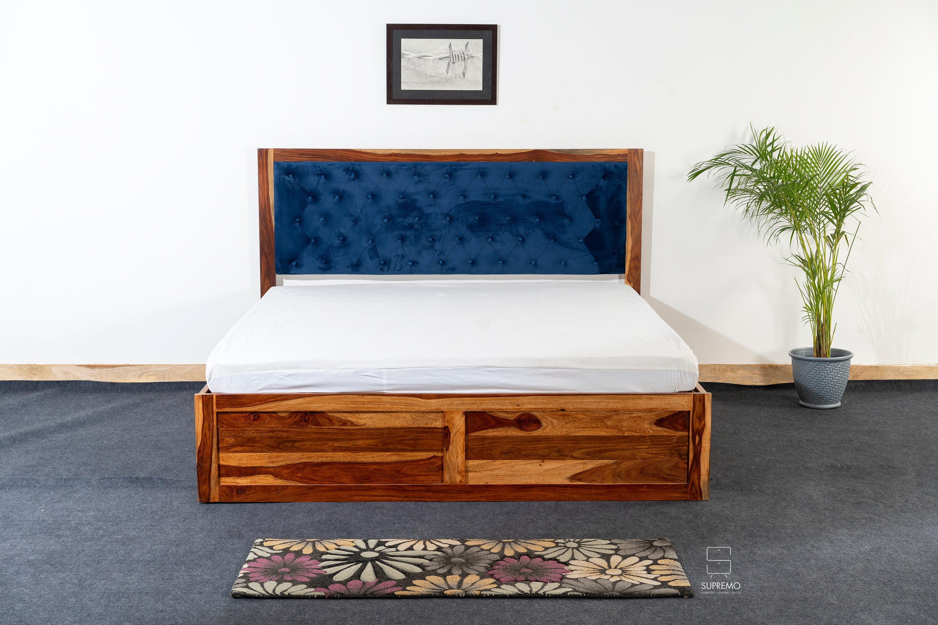 Surrender to the tranquil embrace of the Blue Haven Queen Bed, featuring the sturdiness of natural Sheesham wood. This Queen Bed's minimalist design and fine finish invite a serene atmosphere into your Queen Bedroom, making every night's sleep a restorative escape.