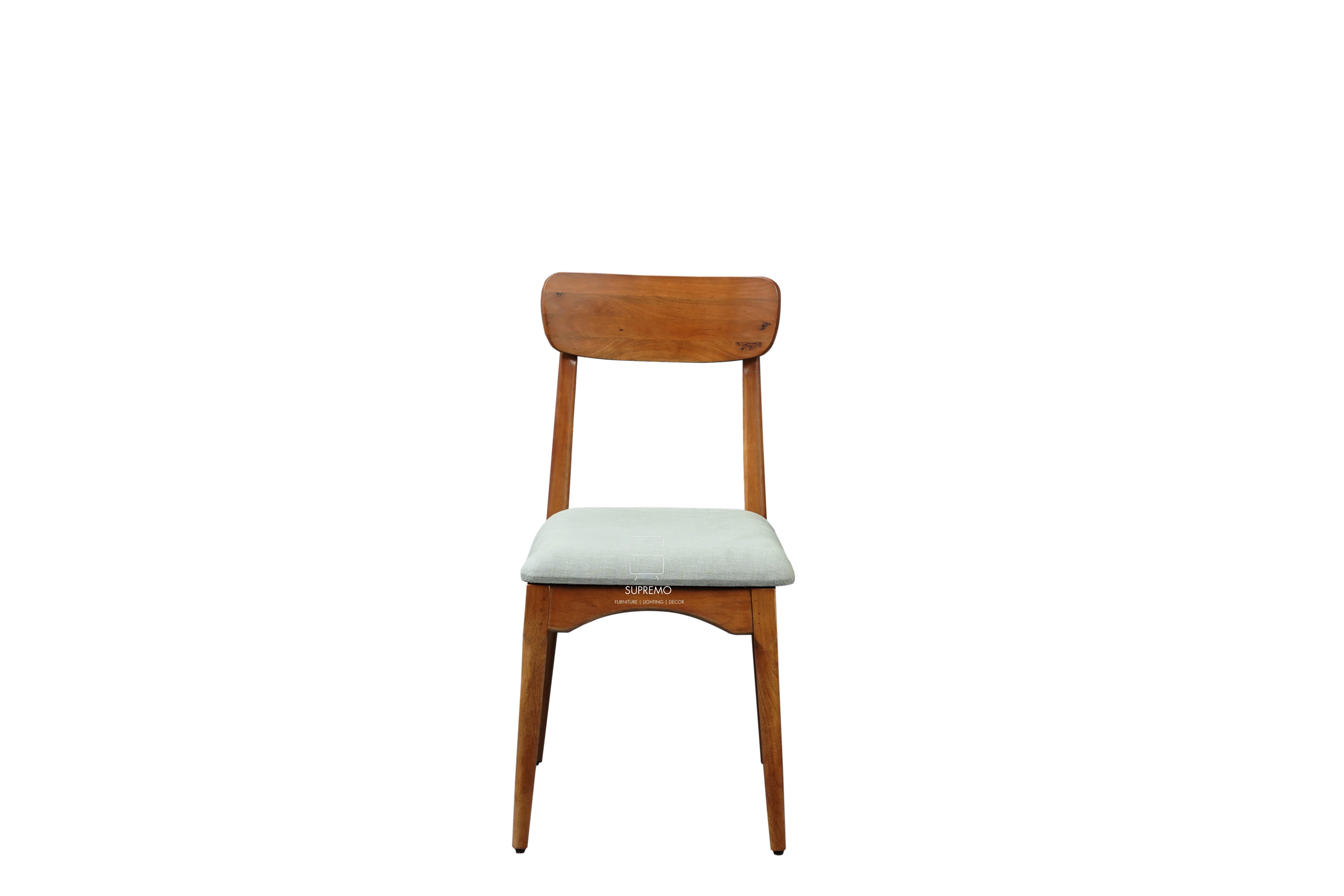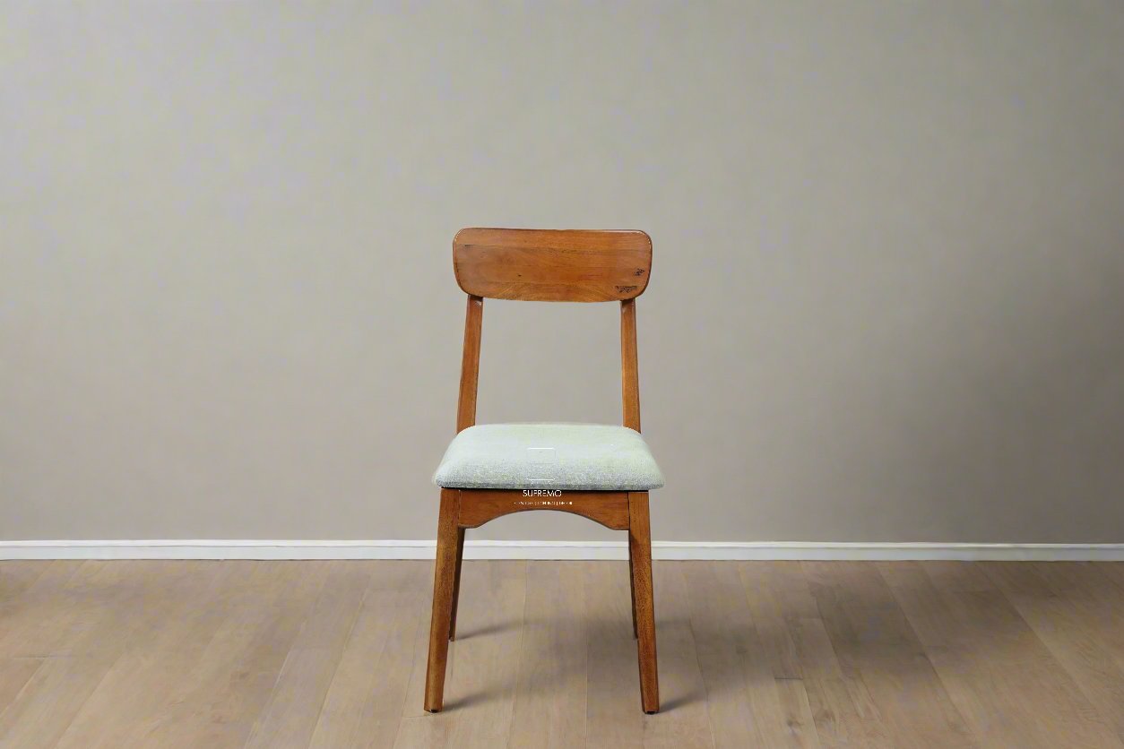 A chair that combines the warmth of mango wood with the comfort of upholstery, finished in natural stain for a cozy addition to any space.