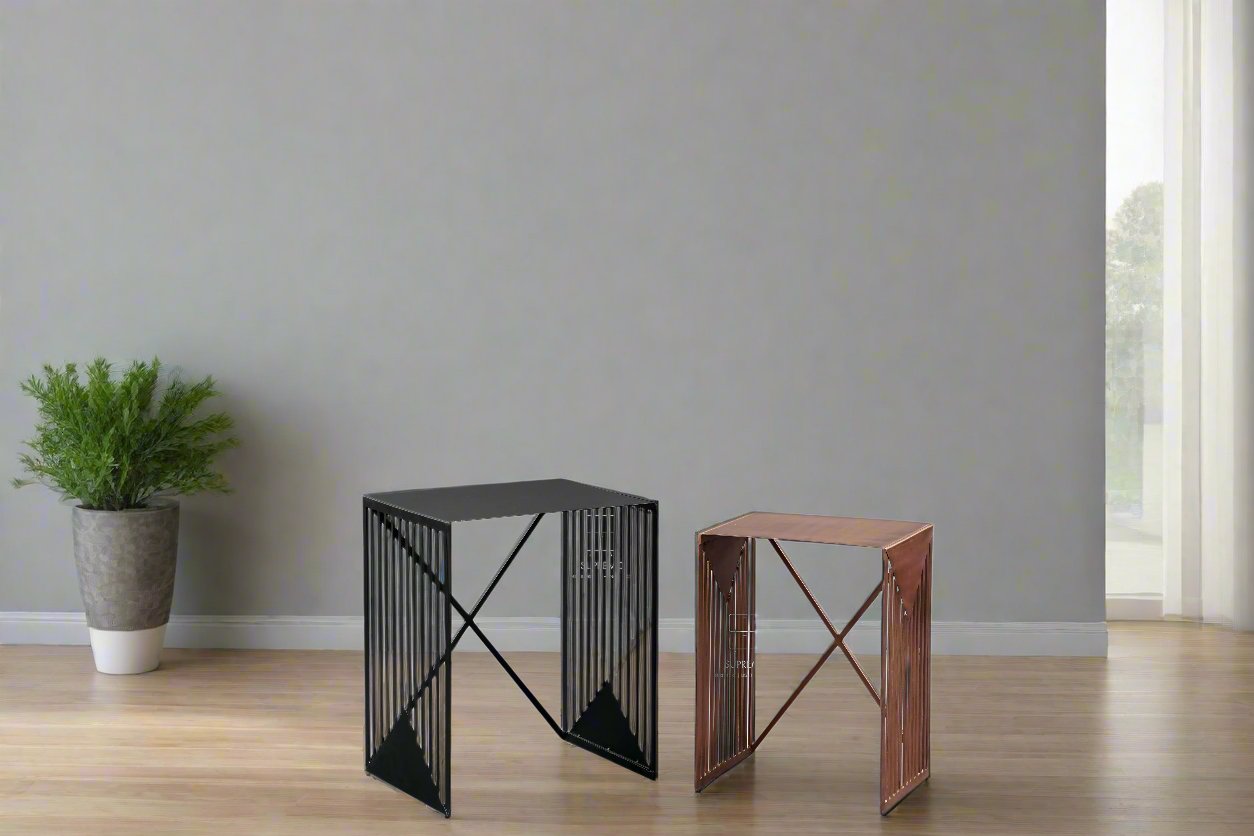 Versatile and stylish nesting tables in metal with a dual finish, fitting together seamlessly for modern flair.
