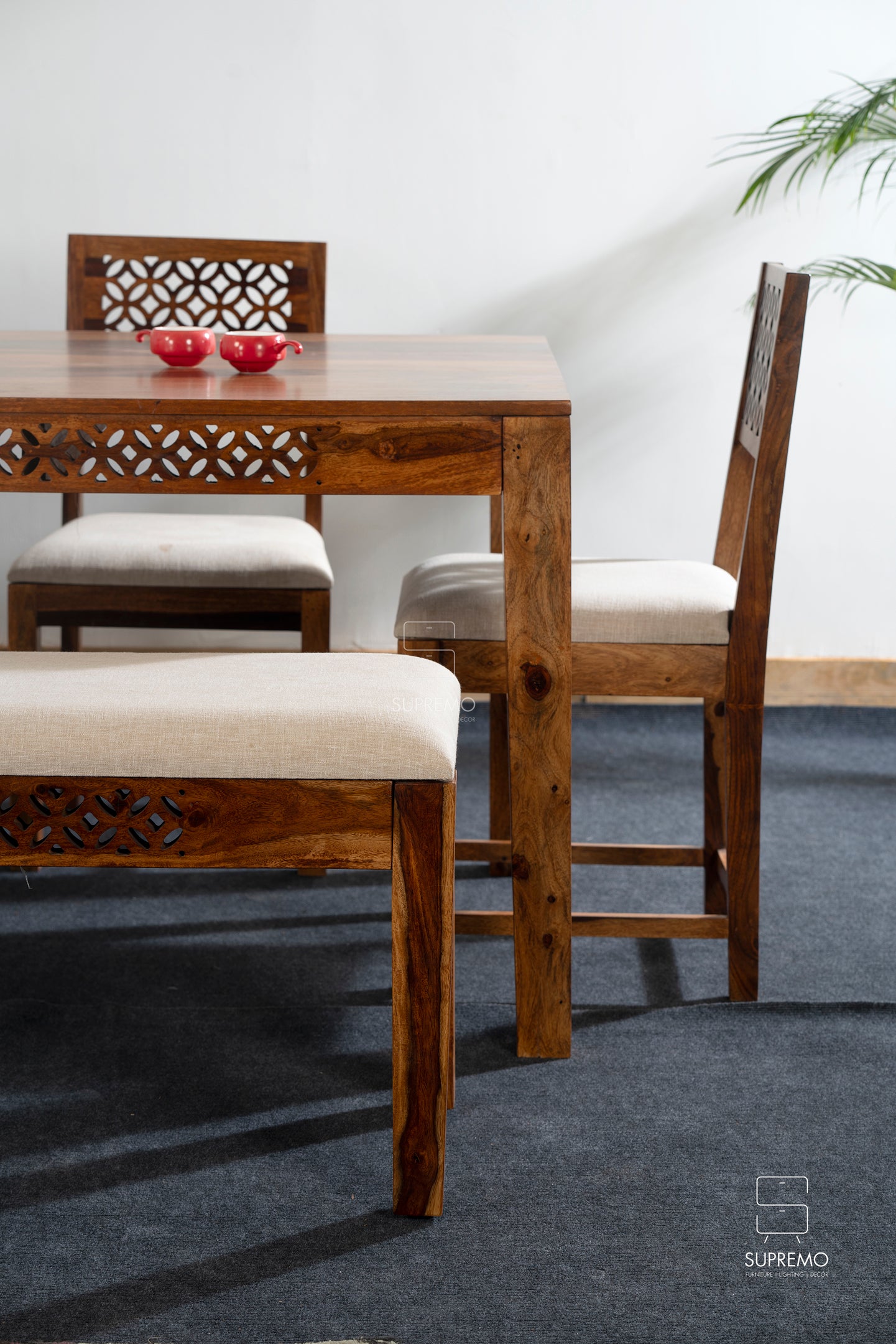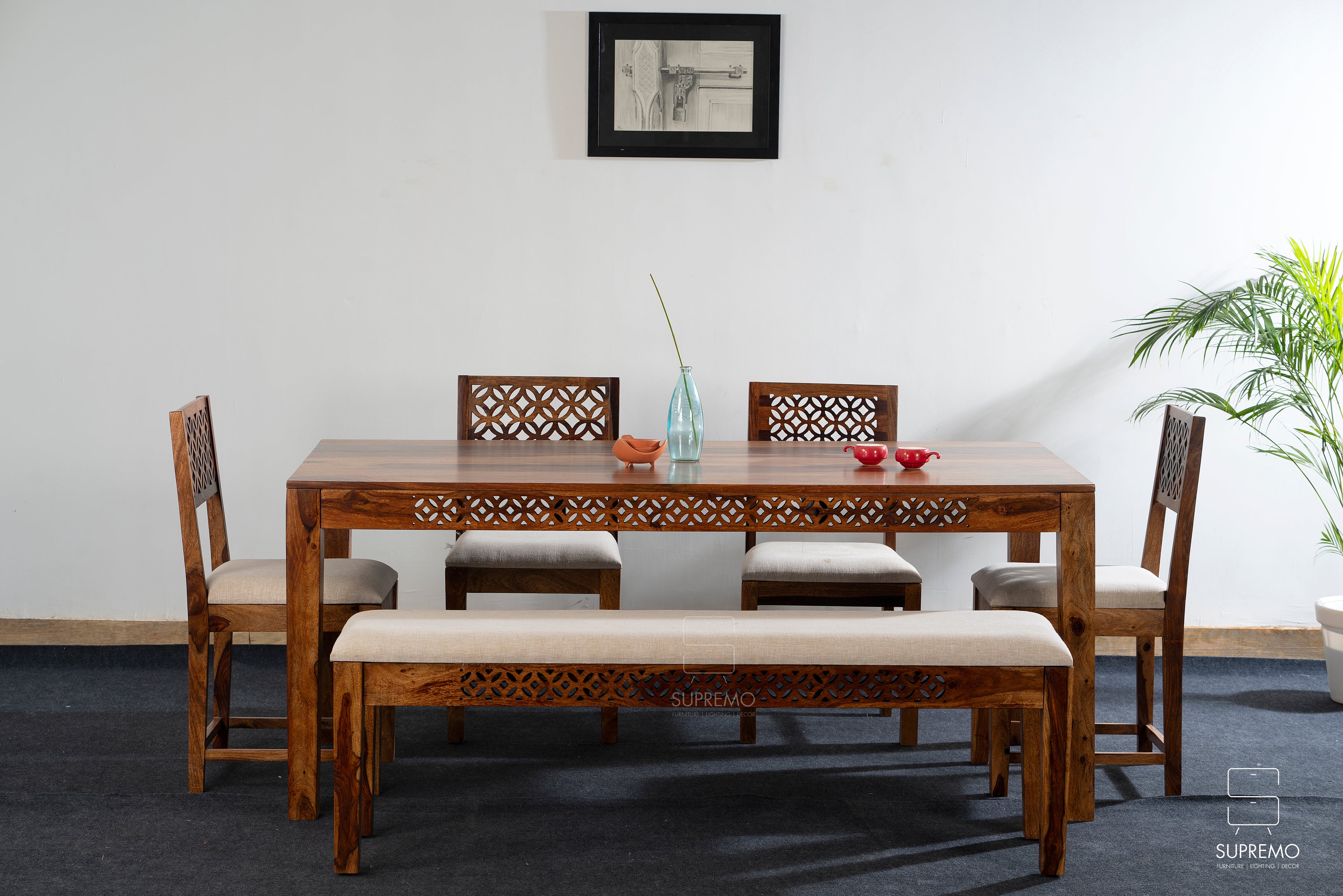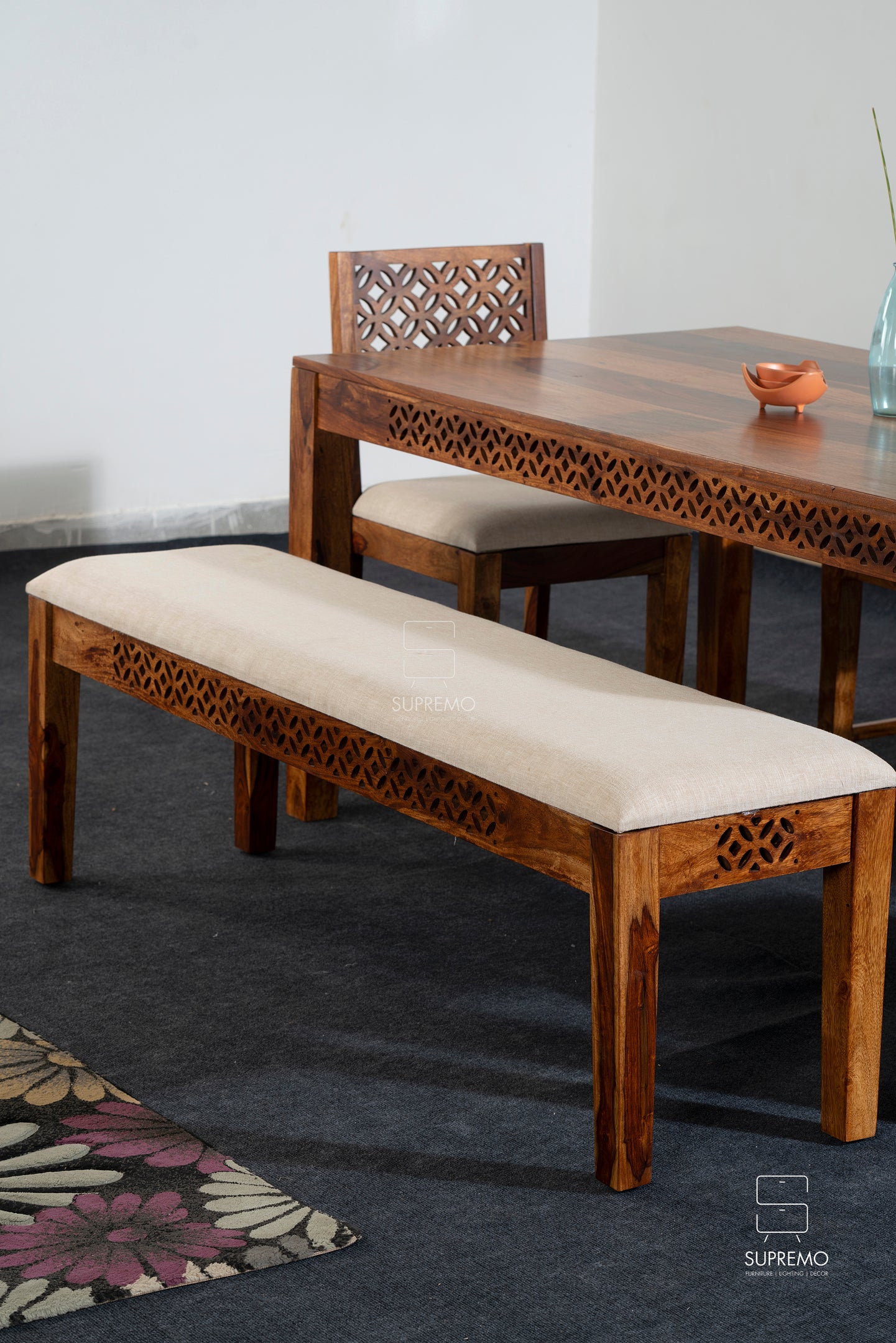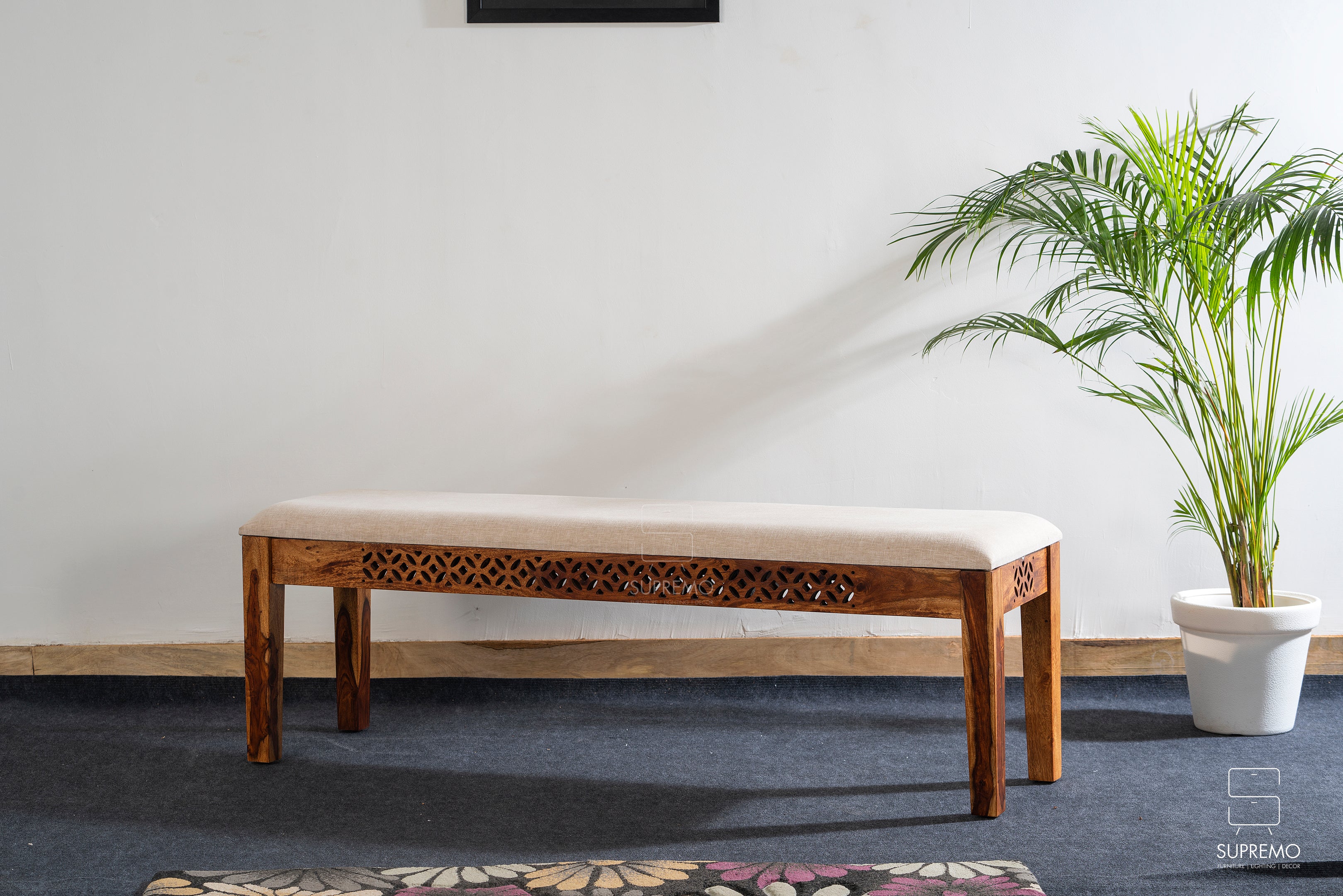 Meet the Lattice Edge Bench, where Sheesham wood's strength meets timeless design. Crafted for durability, its natural finish showcases Sheesham's unique grain patterns, adding sophistication to any space. Elevate your home with this versatile and visually appealing bench, a perfect blend of strength and style.