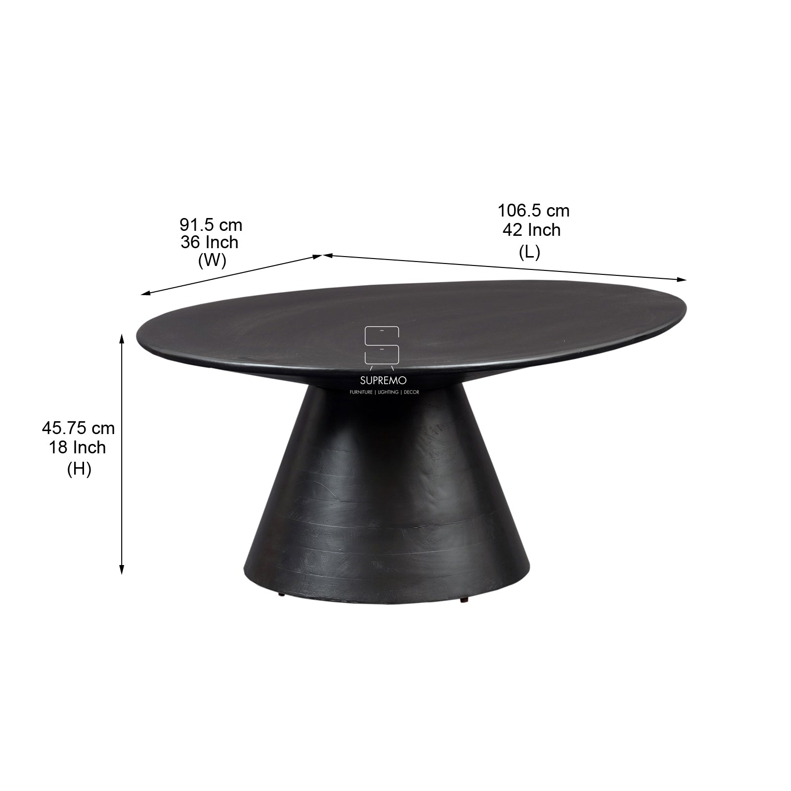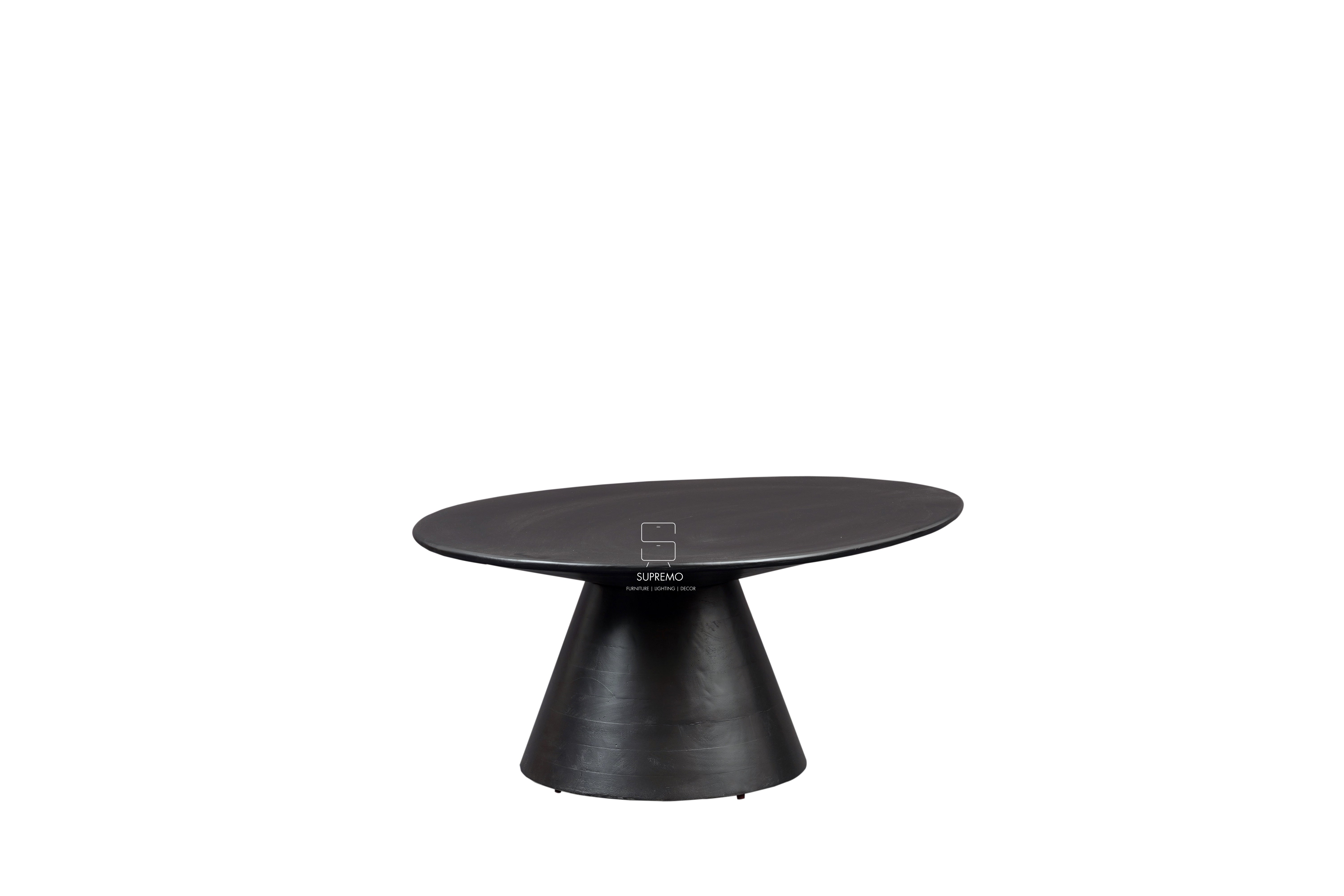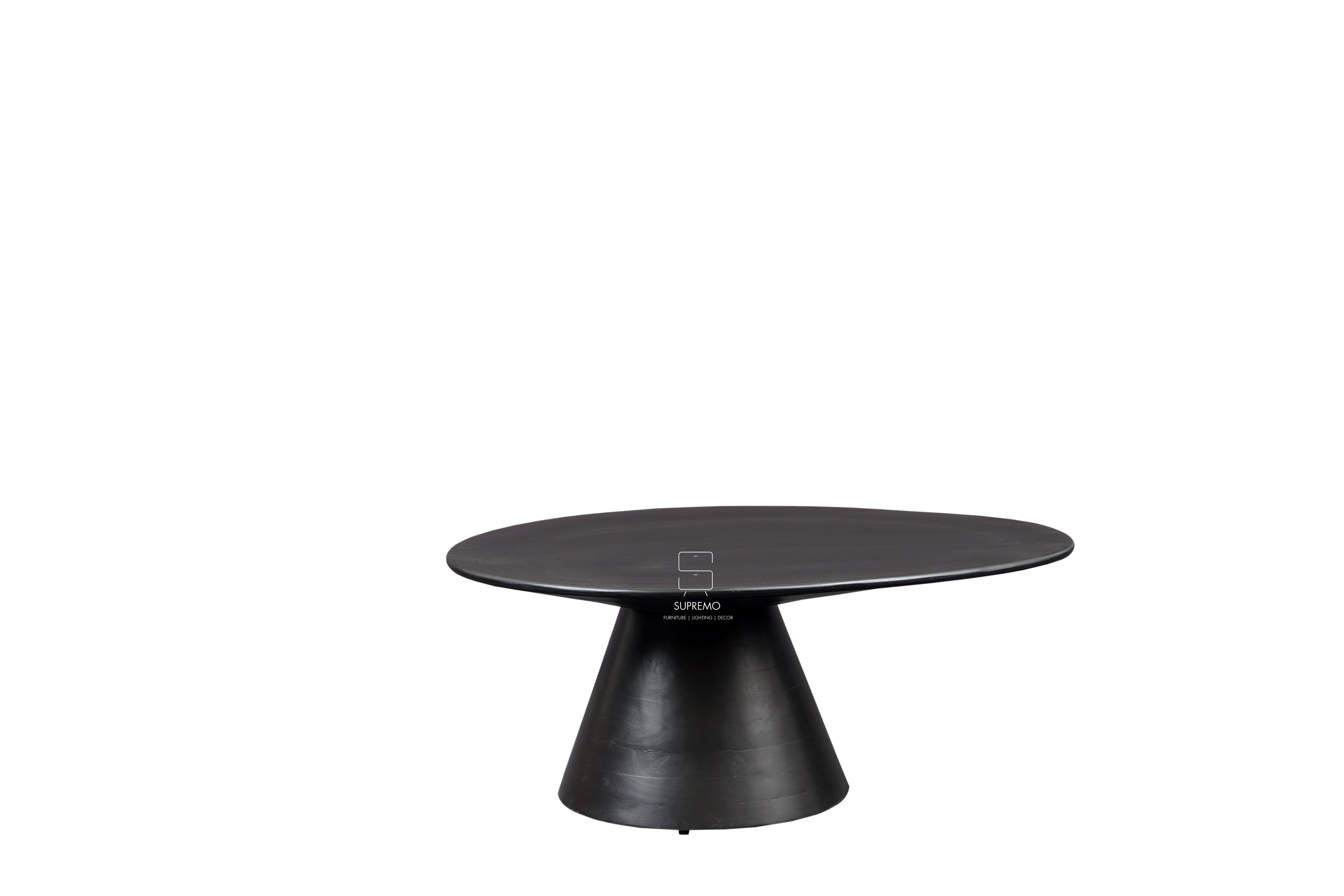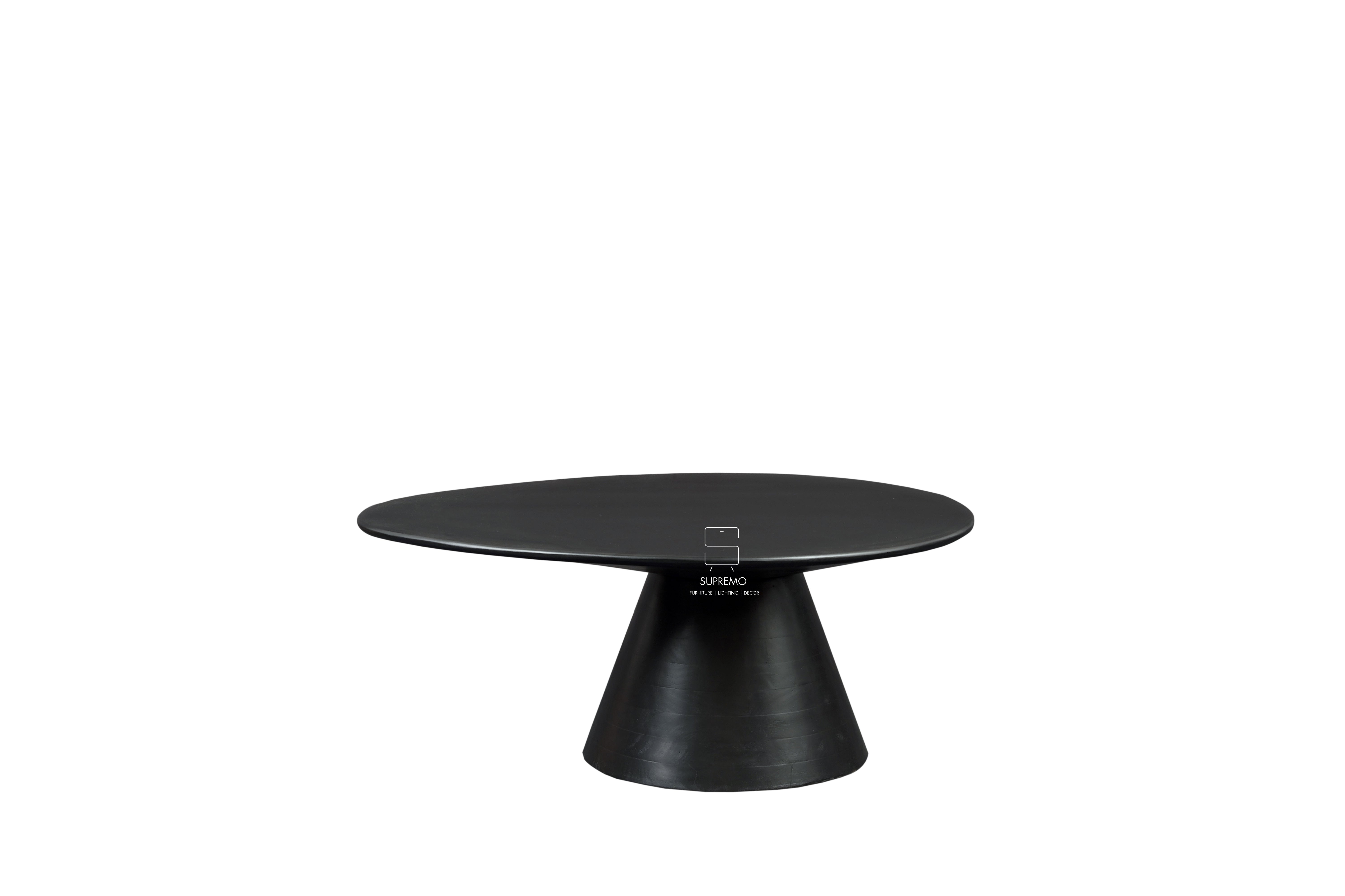 A minimalist coffee table in black Duco finish, showcasing sleek lines and a modern aesthetic, perfect for contemporary living spaces.