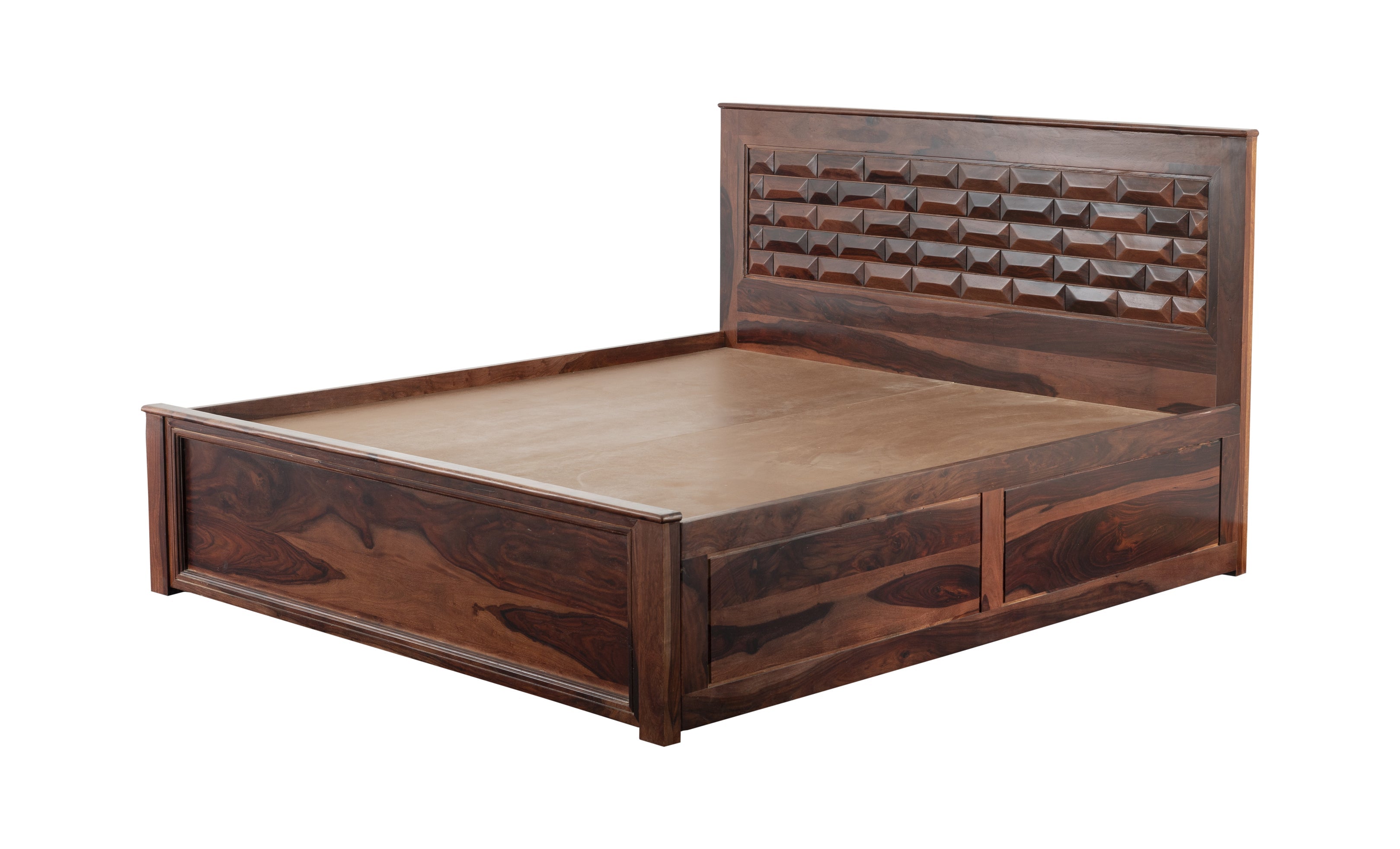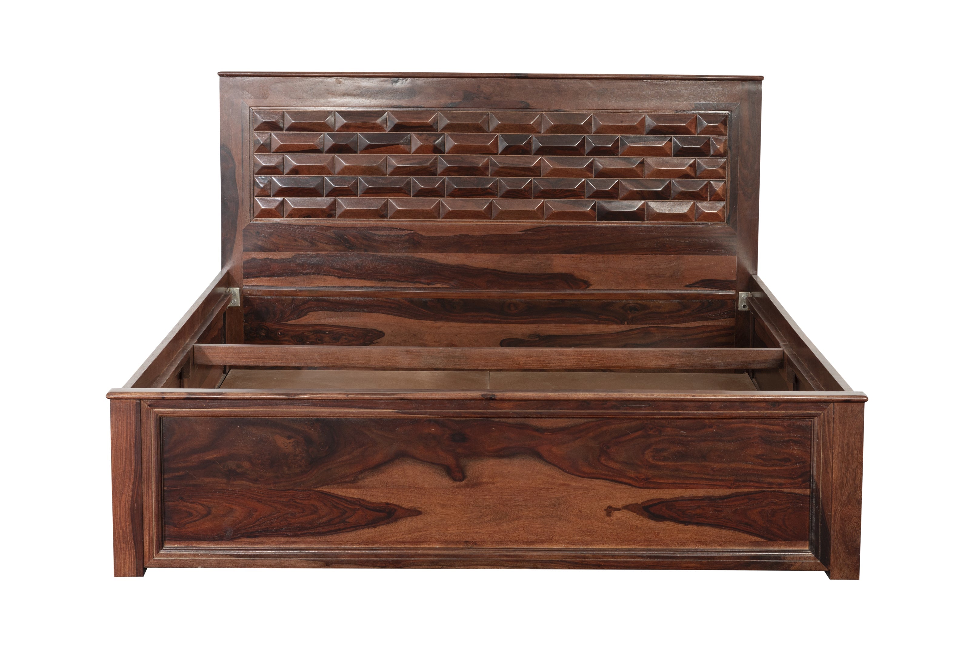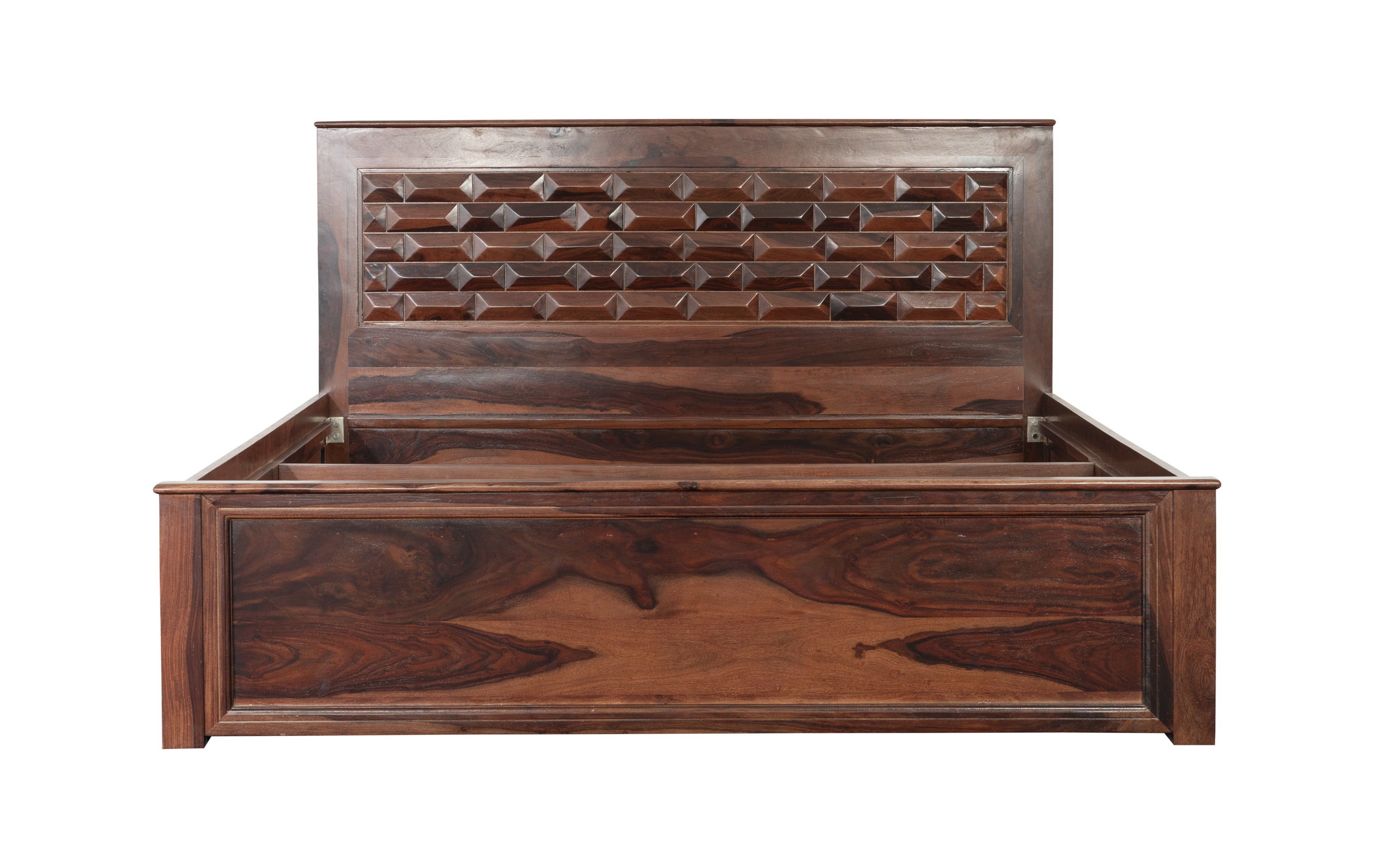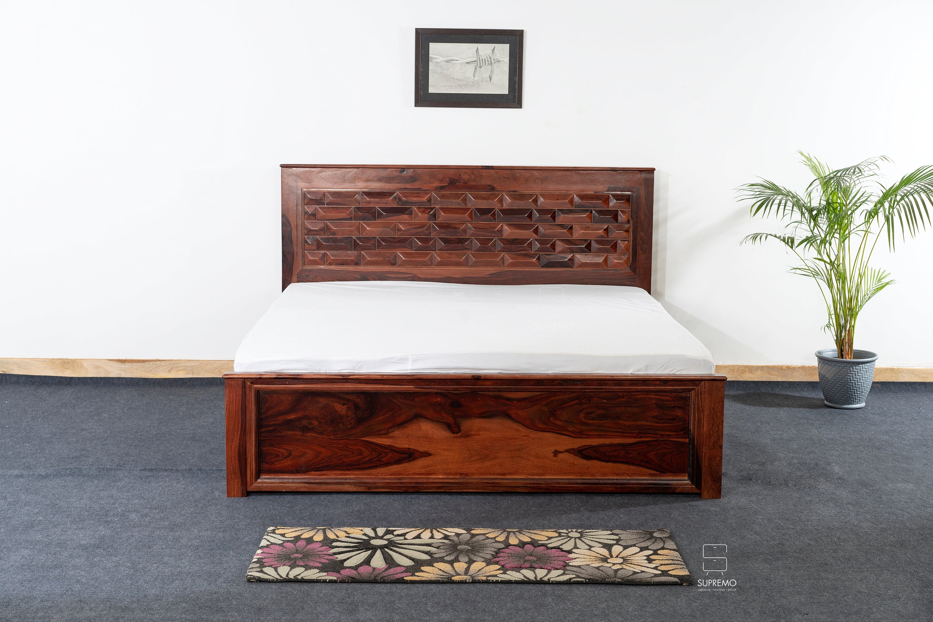 The Mosaic Matrix Queen Bed is a masterpiece of design, featuring a natural Sheesham wood construction. Its headboard boasts a unique mosaic pattern, creating a focal point that's both visually intriguing and inherently comforting, ensuring your Queen Bedroom is a sanctuary of rest.