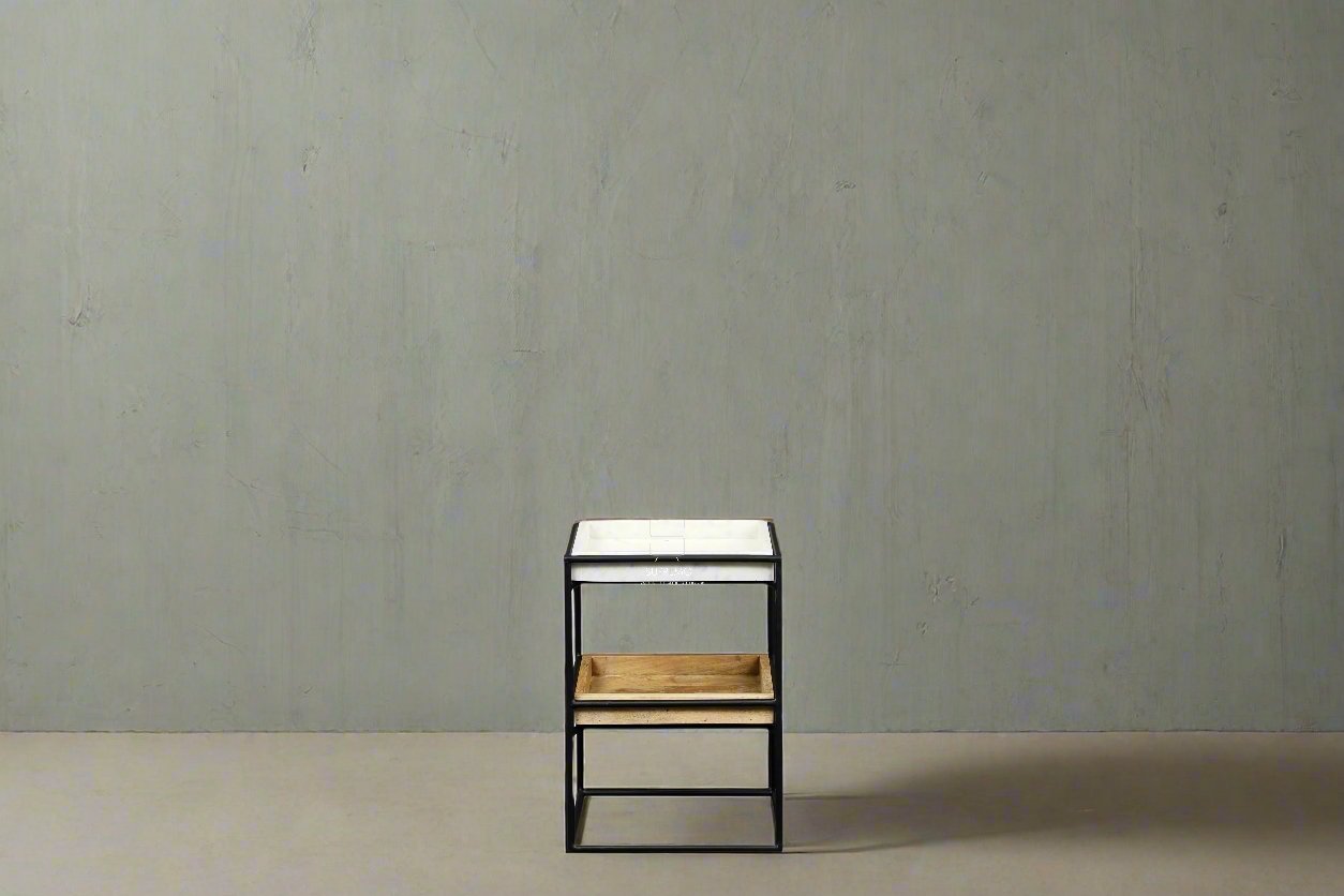 A side table that combines the elegance of Baswara marble with the warmth of mango wood and the strength of metal, perfect for adding a refined touch to any space.