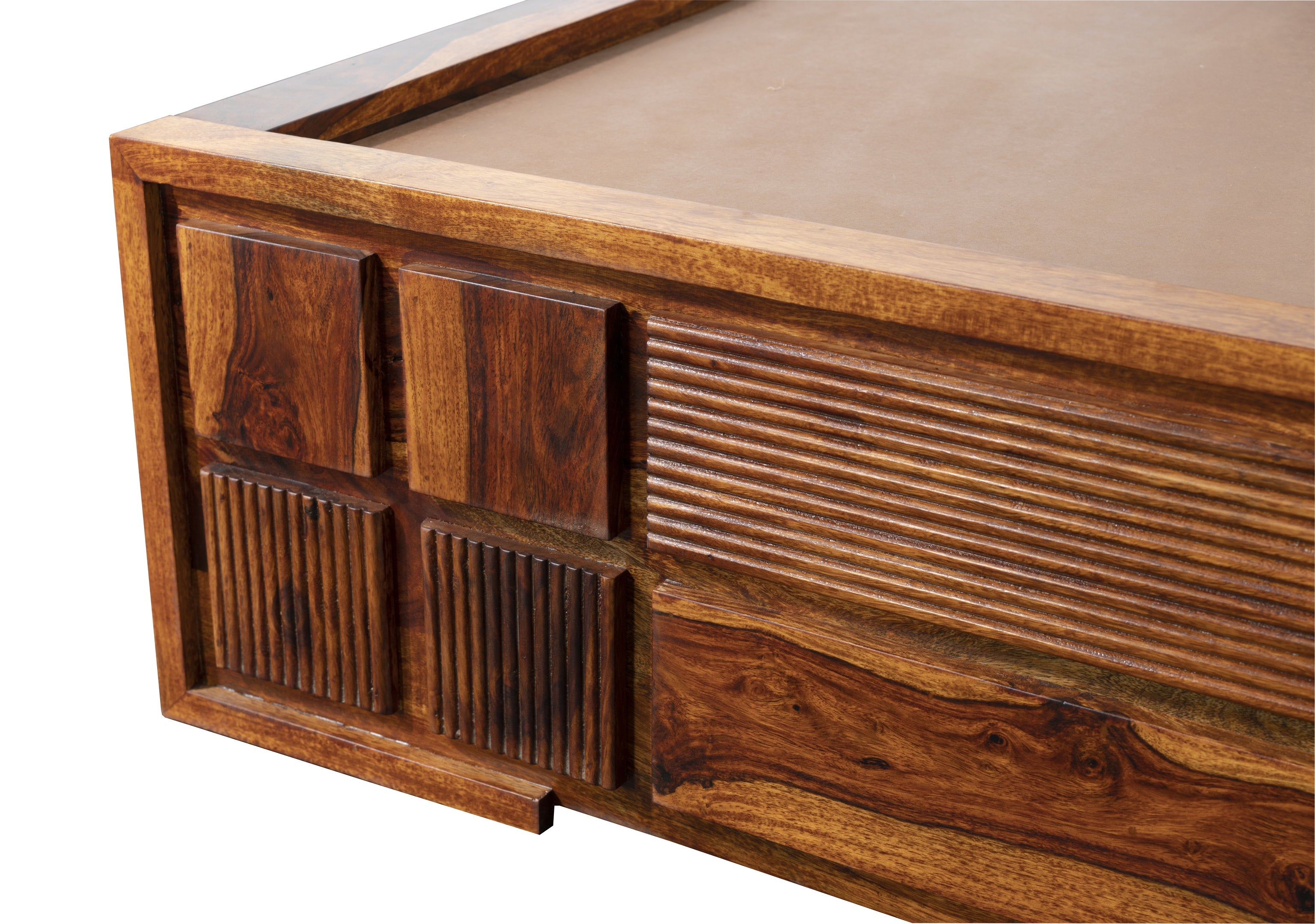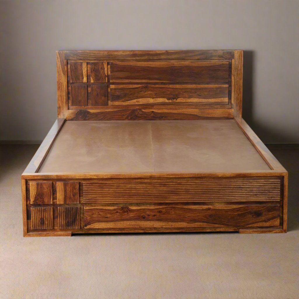 The Sovereign Slumber Queen Bed is a majestic choice for your Queen Bedroom. Crafted from Sheesham wood and finished in rich Hany, it promises regal comfort and a stately presence, ensuring every night's sleep is luxuriously restful.