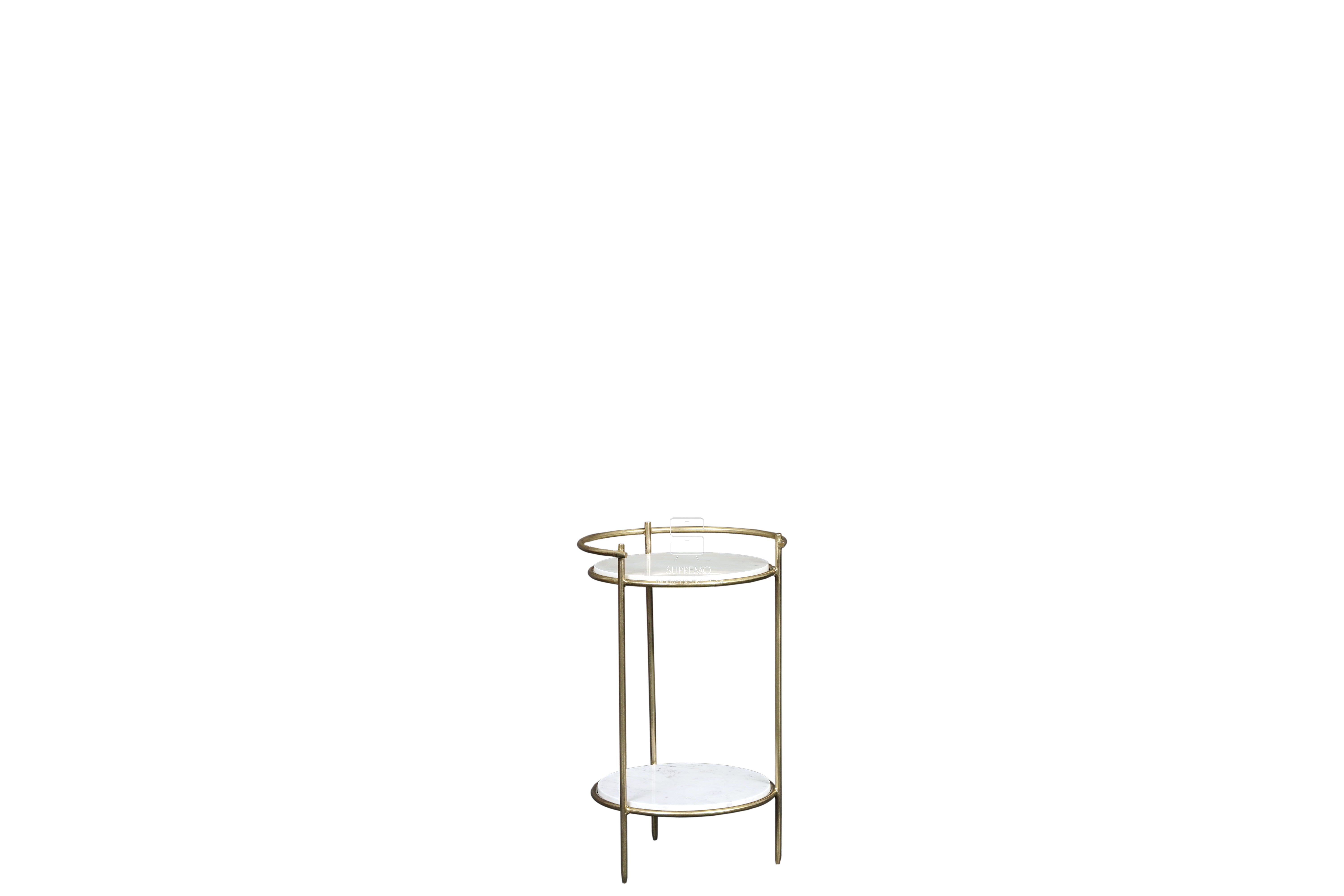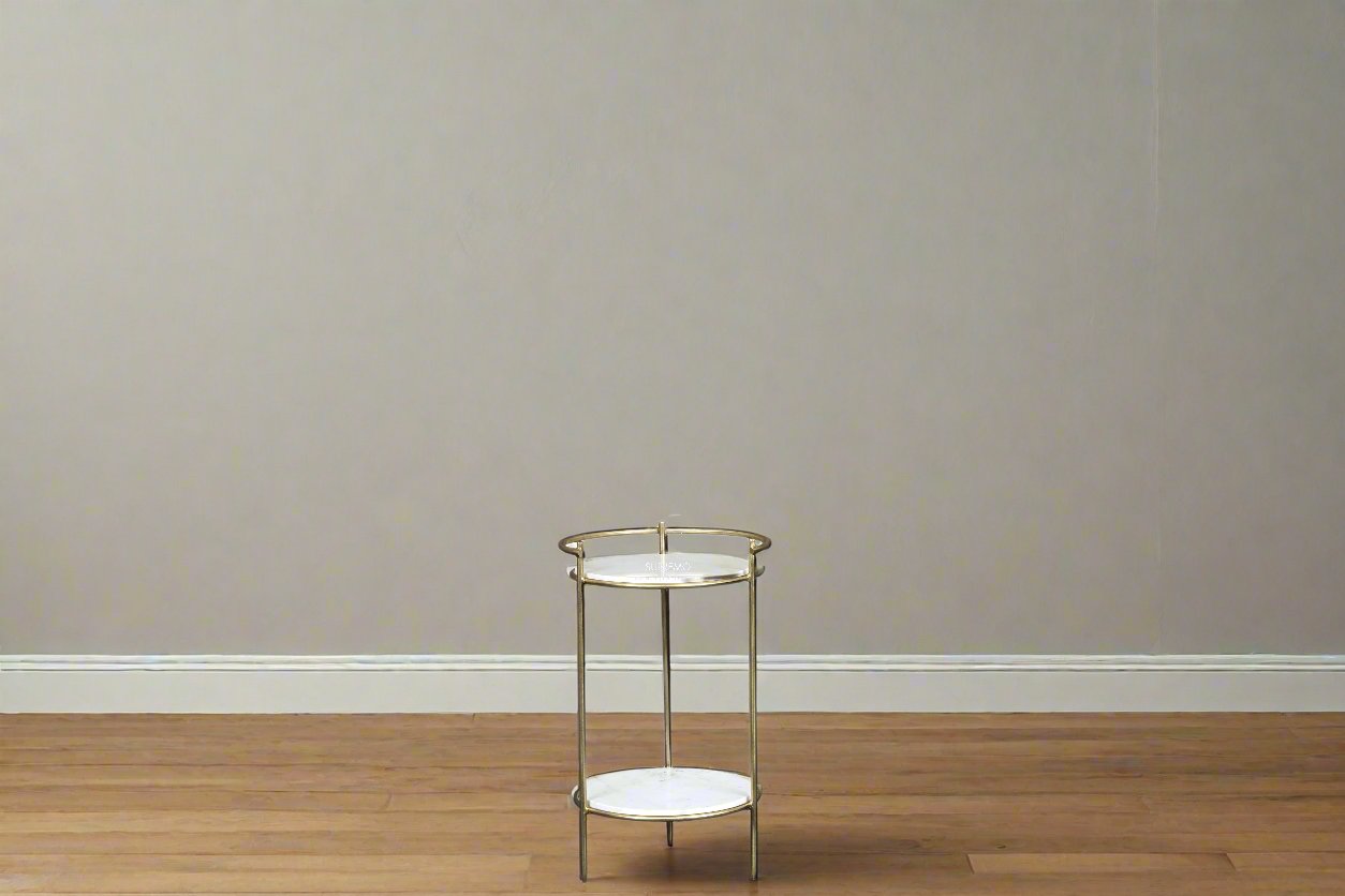 A side table with a strong iron base and a Baswara stone top, finished with brass plating for a statement piece that's both sturdy and stylish.